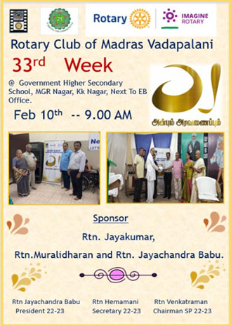 Home Service Projects Anbum Aravanaipum project on 10th February, 2023 at Government Higher Secondary School,... Service Projects Anbum Aravanaipum project on 10th February, 2023 at Government Higher Secondary School, MGR nagar By RCMV.ORG - Admin - February 14, 2023 1575 0 Facebook Twitter Pinterest WhatsApp Anbum Aravanaipum project on 10th February, 2023 at 2) Government Higher Secondary School, MGR nagar Sponsor: Rtn Jayakumar, Rtn Muralidharan, Rtn Jayachandra Babu Sponsored: Education needs for Students Time: 10.30am