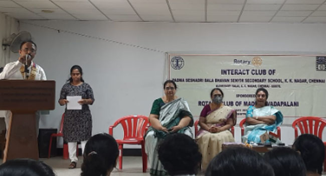 RCMV completed, Padma Seshadri Bala Bhavan Senior Secondary School, KK nagar, Interact club installation on 8th August-2022 from 2.30pm to 3.30pm