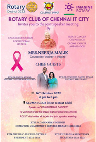 Joint club meeting with RC IT City on 16th October-22 at Anna University Alumni club, Boat club road, Chennai