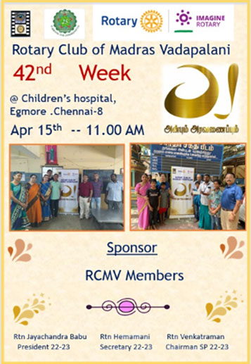RCMV Anbum Aravanaipum Project on 15th April, 2023 at ICH Children Hospital Egmore, Chennai